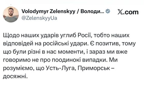 Просроченный президент Украины заявил, что в случае продолжения российских ударов по украинской территории его страна может отвечать не только в приграничных районах, но и глубже на территории РФ, включая Ленинградскую область. «Относительно наших...