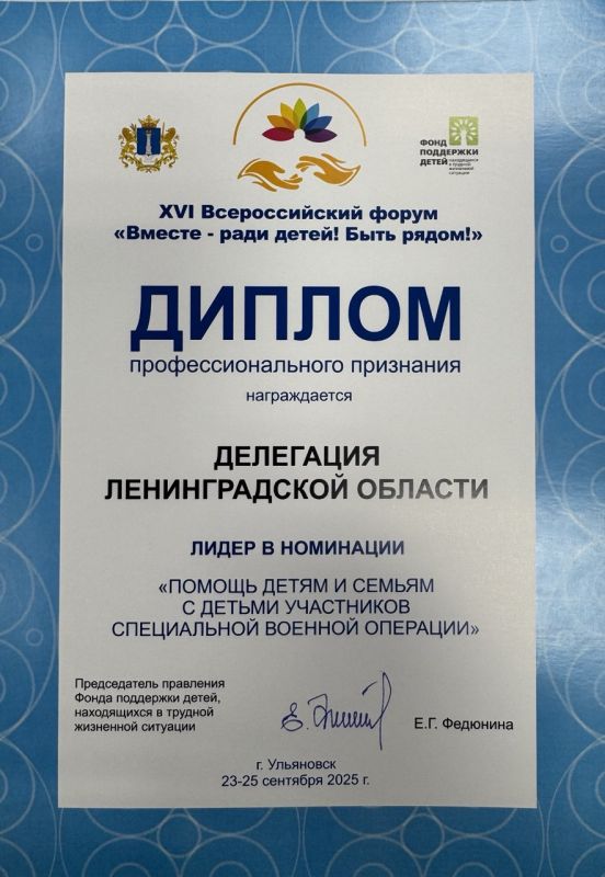 Ленинградская область стала лидером XVI Всероссийского форума «Вместе — ради детей! Быть рядом!» в двух ключевых номинациях:* «Помощь детям в особых жизненных ситуациях, формирующих психоэмоциональную травму» * «Помощь детям и семьям с...