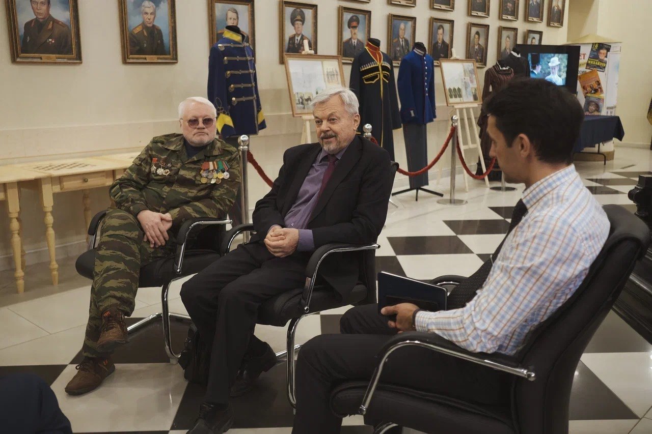 Встреча прошла в формате беседы, участниками которой стали люди, посвятившие жизнь службе и добившиеся высоких результатов в своей профессии: председатель совета ветеранов УУР ГУ МВД России по Санкт-Петербургу и Ленинградской области Виктор Егорович Брылёв, ветеран уголовного розыска ГУ МВД России по г. Санкт-Петербургу и Ленинградской области, подполковник милиции в отставке, кавалер ордена Красной Звезды Олег Владимирович Беляев, а также начальник экспозиции Культурного центра ГУ МВД России, полковник внутренней службы, кандидат юридических наук Александр Петрович Стоцкий.