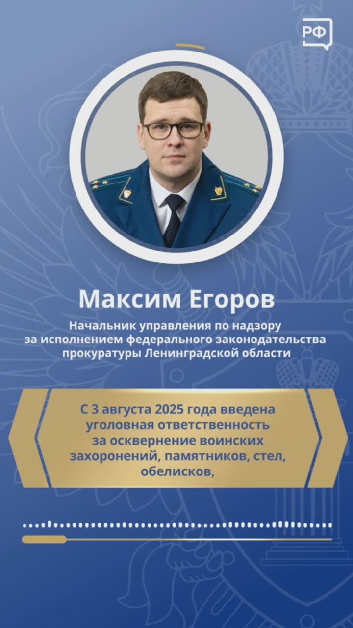 С 3 августа 2025 года в России введена уголовная ответственность за осквернение воинских захоронений и мемориальных сооружений