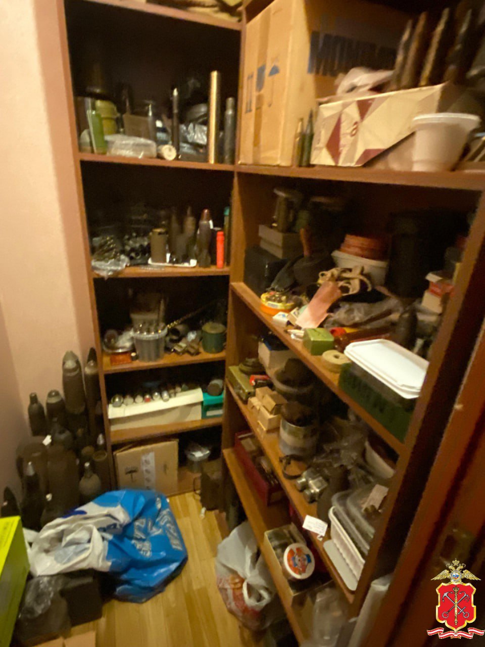 В ходе обыска в жилище, которое, со слов знакомой матери задержанного, принадлежит её умершему отцу, стражи правопорядка обнаружили внушительное количество предметов, конструктивно схожих с боеприпасами и взрывчатыми веществами.