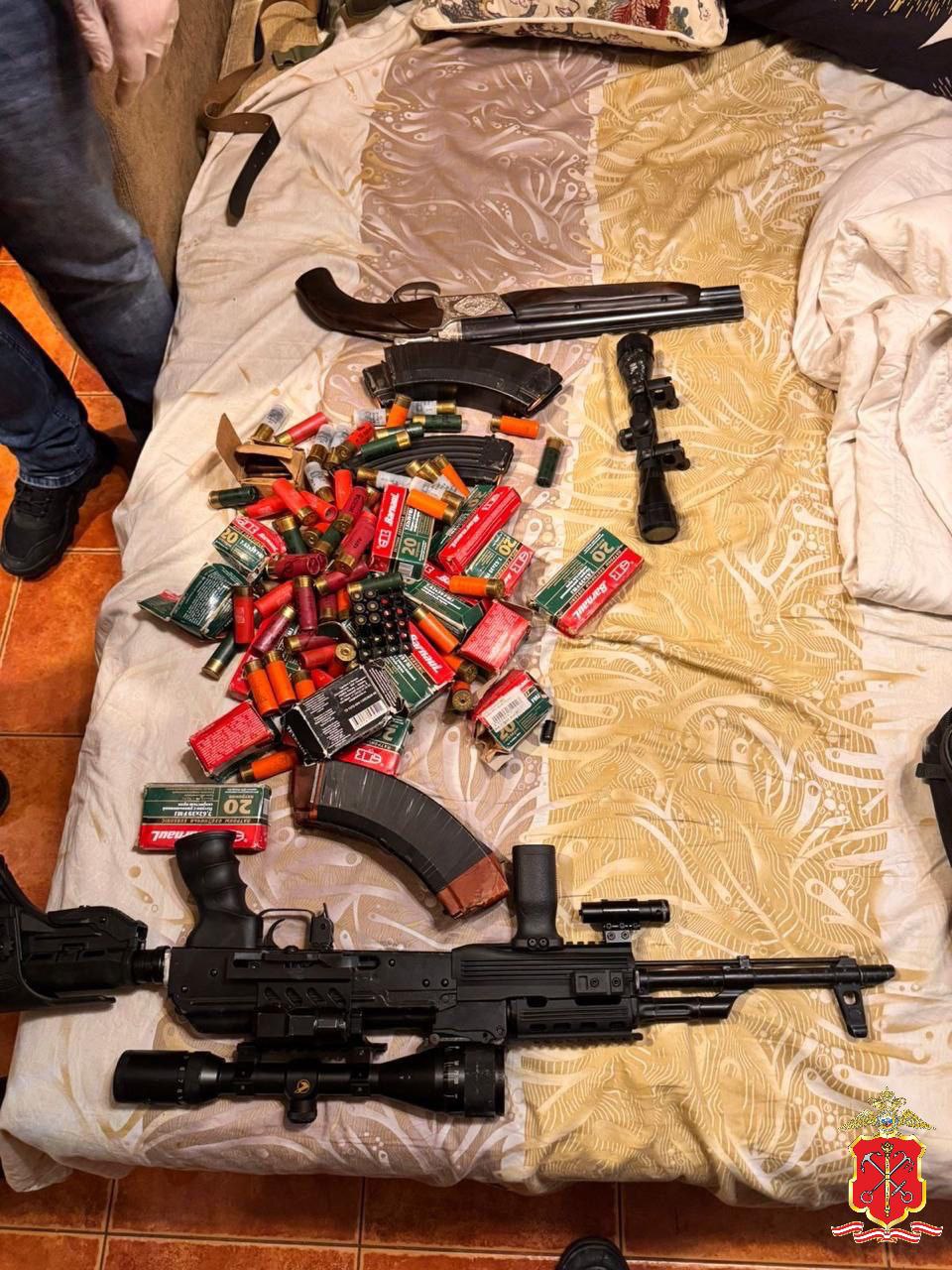В ходе обыска по месту проживания задержанного полицейские обнаружили автомат Калашникова, охолощенный пистолет Макарова, переделанный под стрельбу боевыми патронами, обрез гладкоствольного ружья и 350 патронов различных калибров.