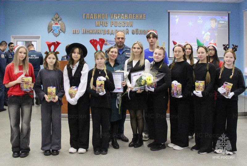 Кроме того, в торжественном поздравлении принял участие творческий коллектив учеников из Муринской школы №3, который поздравил спасателей танцевальным номером. После завершения мероприятия сотрудники МЧС России провели для ребят экскурсию по территории Главного управления.