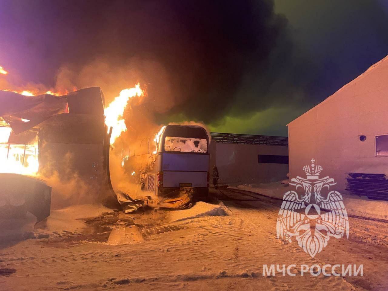 Возгорание в ангаре, построенном из металлоконструкций, обшитого железом, размером 2040 метров.Пострадавших нет.