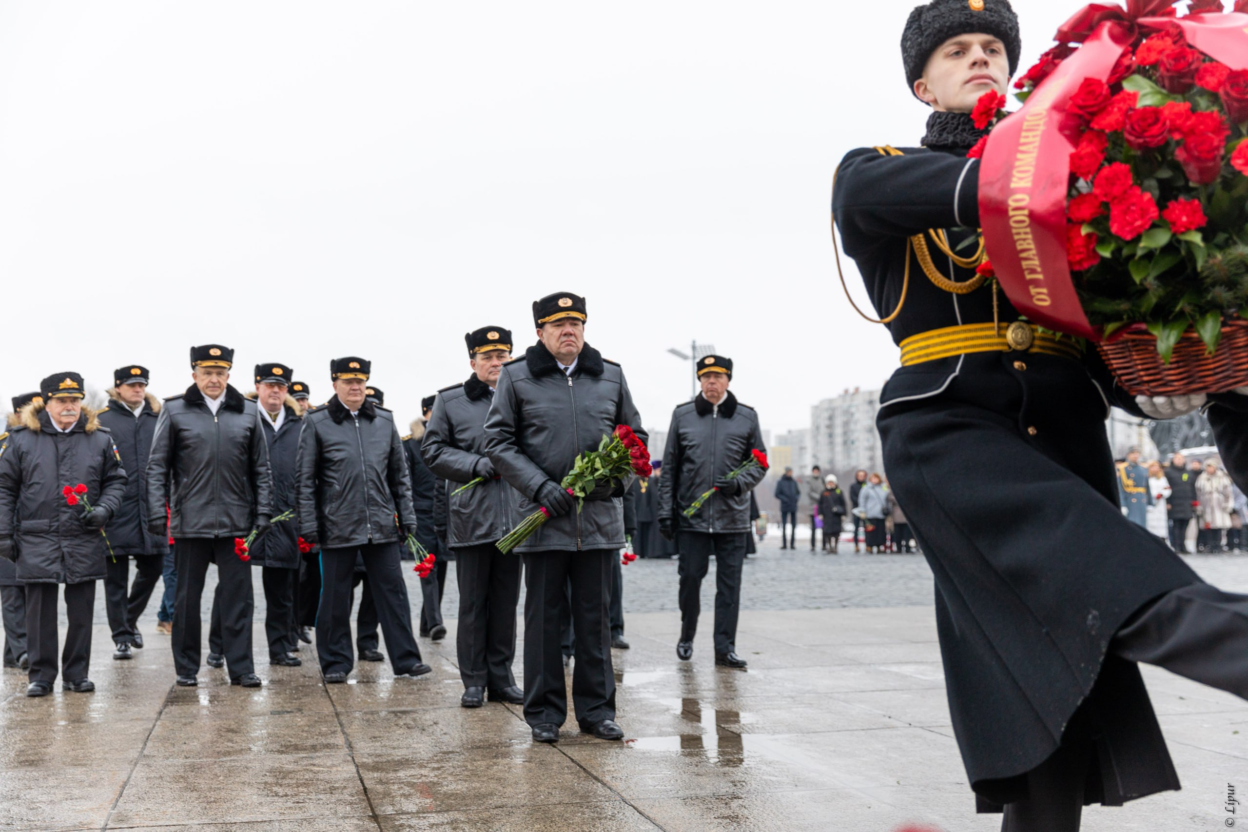 Также возложили цветы и отдали дань памяти освободителям Ленинграда военнослужащие Главного командования ВМФ.