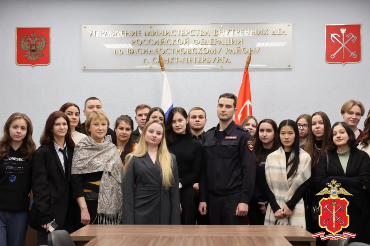 В рамках Всероссийской акции «Студенческий десант» в УМВД России по Василеостровскому району Санкт-Петербурга по приглашению полицейских пришли студенты юрфака Санкт-Петербургского государственного университета.