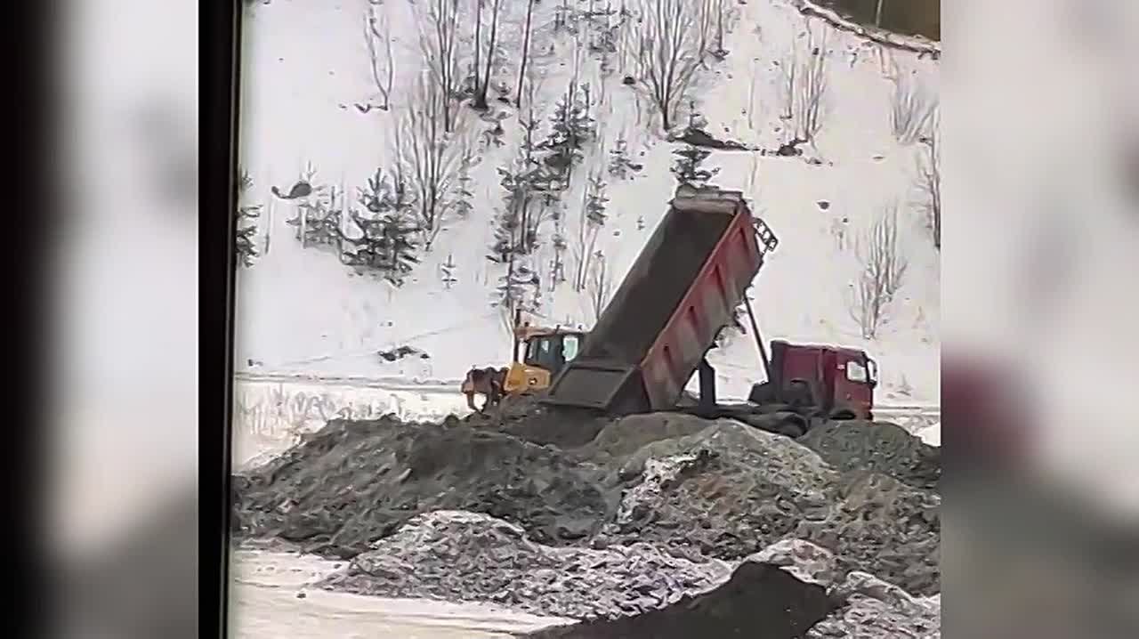 В ходе выездного осмотра карьера сотрудники правоохранительных органов обнаружили работающие бульдозер и три самосвала, сгружавшие отходы.