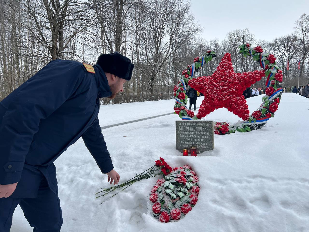 Также офицеры следственных отделов по Фрунзенскому, Калининскому, Приморскому Курортному, Василеостровскому приняли участие в траурных мероприятиях, проведённых в местах массовых захоронений воинов и мирных жителей, павших в время блокады Ленинграда на Тарховском, Серафимовском, Богословском, Смоленском и Ново-Волковском кладбищах.