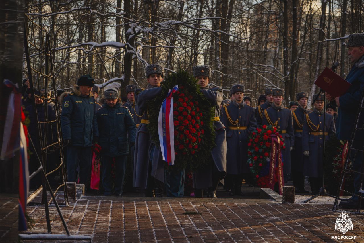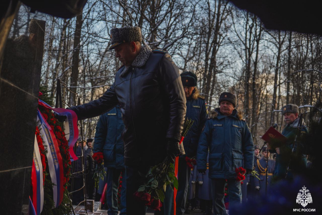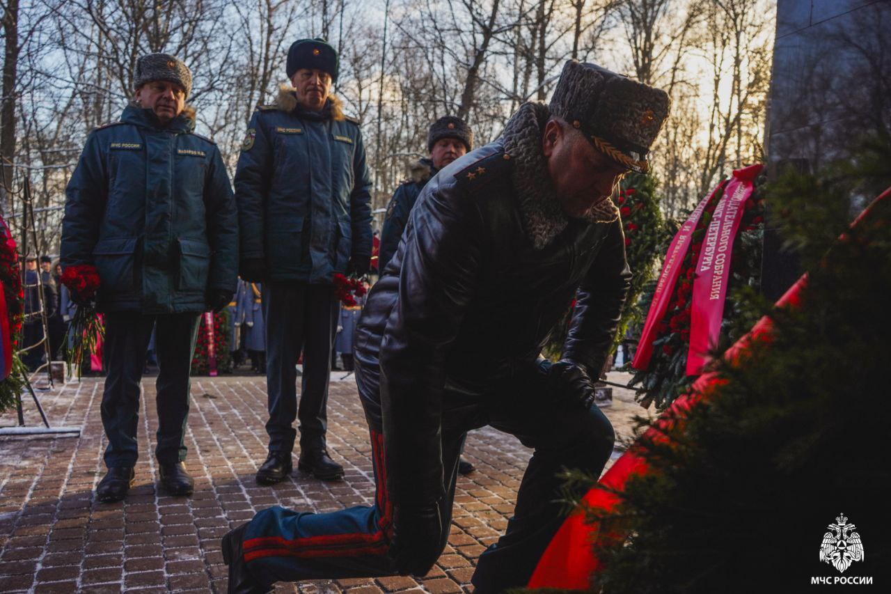 Сегодня на Серафимовском кладбище прошла торжественно-траурная церемония возложения венков к мемориалу пожарным, погибшим при тушении пожара в гостинице «Ленинград».