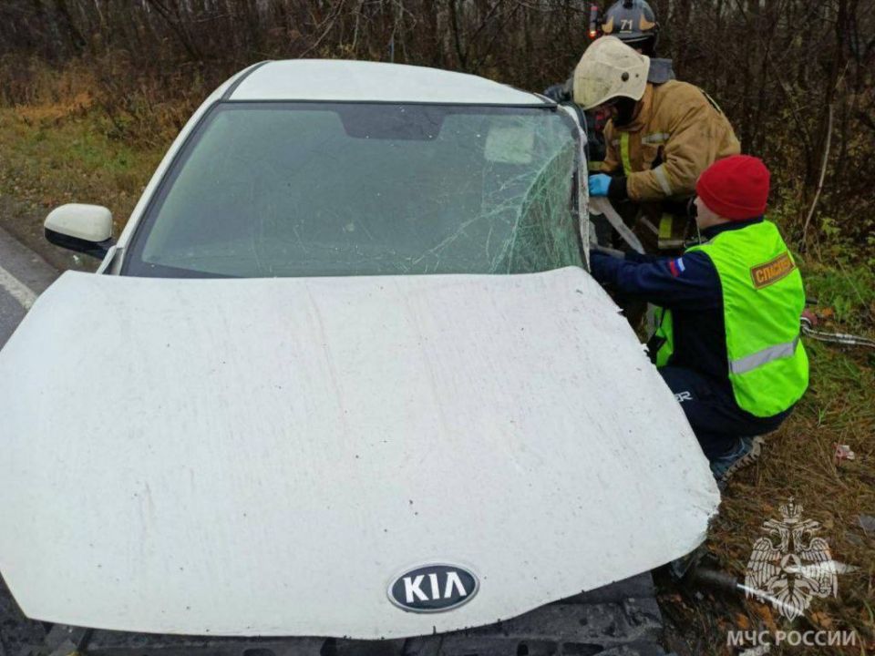 В результате ДТП произошло касательное столкновение грузовика и легкового автомобиля. В результате столкновения грузовик съехал в кювет, а водитель и пассажир легковушки оказались заблокированы в салоне.На место происшествия оперативно прибыли...