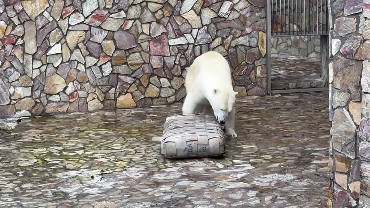 В Ленинградском зоопарке белая медведица Хаарчаана получила необычный подарок