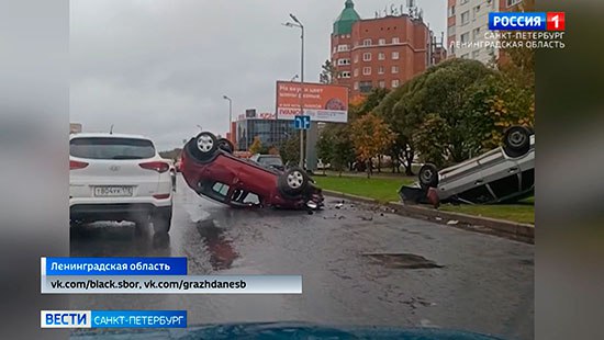 Серьезная дорожная авария в Сосновом Бору. Сегодня утром там столкнулись сразу три машины: две иномарки - одна из которых электрическая, и отечественная классика.