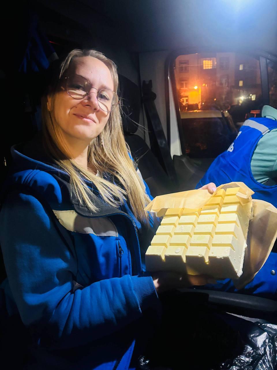 На фото — Сертоловская бригада скорой помощи с шоколадом от ленинградцев