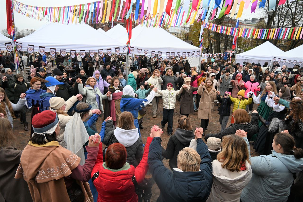 По всему Старому городу и у главных достопримечательностей развернулись игровые станции: участники метают копья, стреляют из луков, создают средневековые открытки, соревнуются в забрасывании кренделей в корзину – и, конечно, в их поедании.