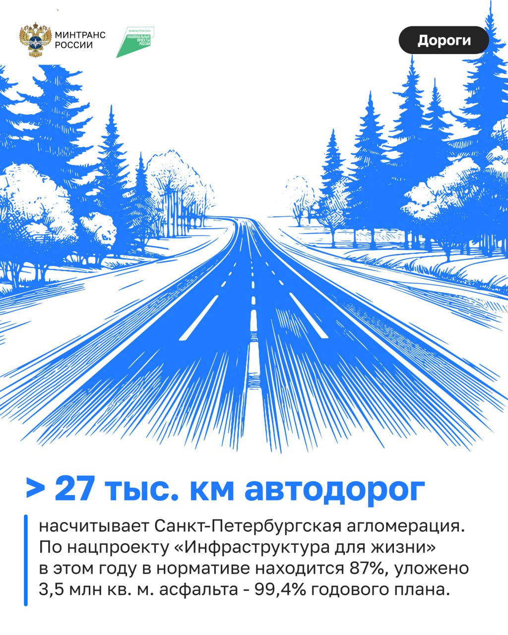 Обновляются и дороги: всего в агломерации их более 27 тыс. км. По нацпроекту «Инфраструктура для жизни» в этом году уложено 3,5 млн кв. м асфальта – план выполнен на 99,4%.