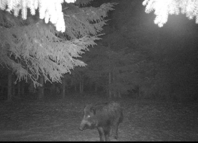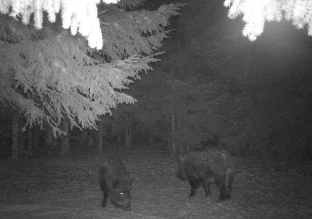 В объективы фотоловушек, установленных в заказниках «Выборгский» и «Кивипарк» (Ленинградская область), попали кабаны. В холодное время года эти животные устраивают себе лежбища из мха, веток и хвои.