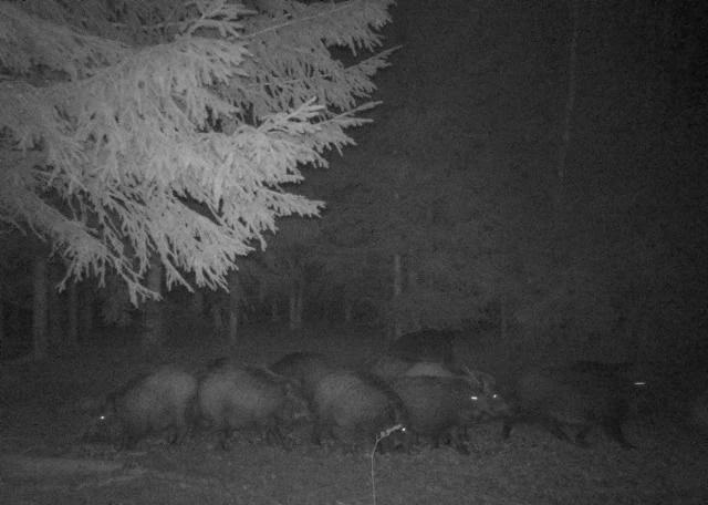 В заказниках Ленобласти фотоловушки запечатлели семьи кабанов