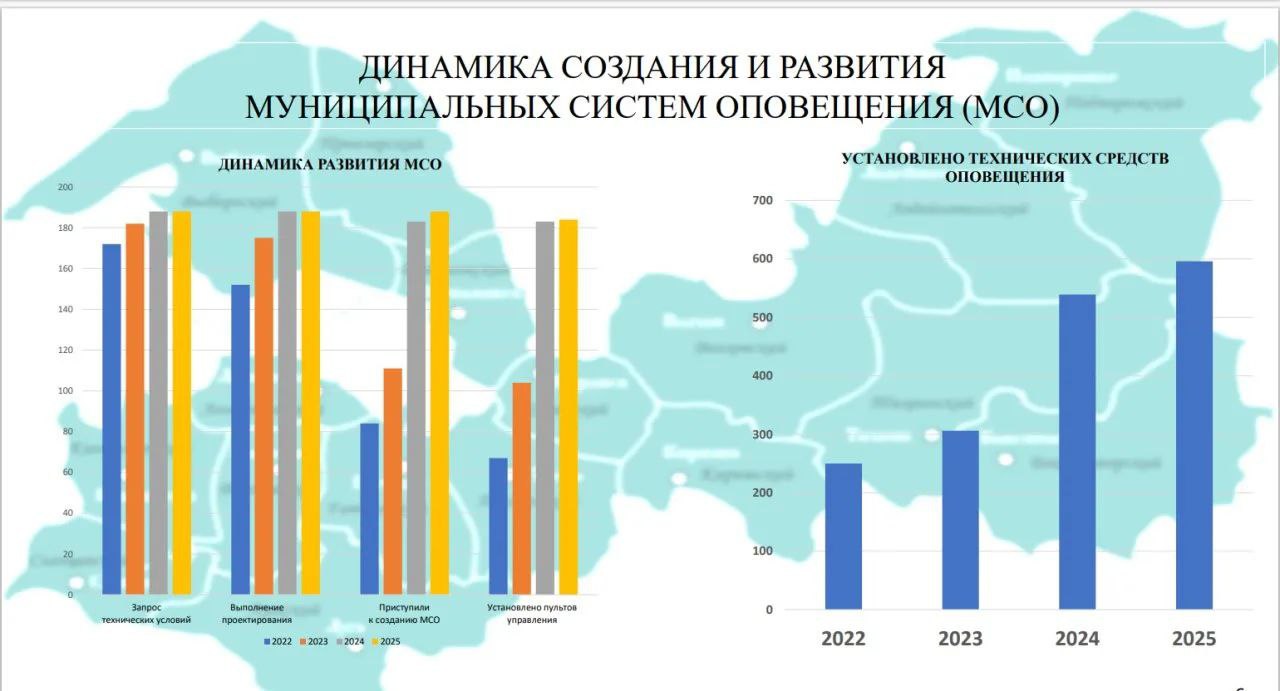 В 2025 году во всех муниципалитетах Ленобласти созданы новые системы оповещения с трёхуровневым управлением — от регионального до поселенческого. Для этого было построено 17 новых постов мониторинга и 60 постов технического оповещения, а 158 технических средств оповещения переведены на отечественное оборудование.