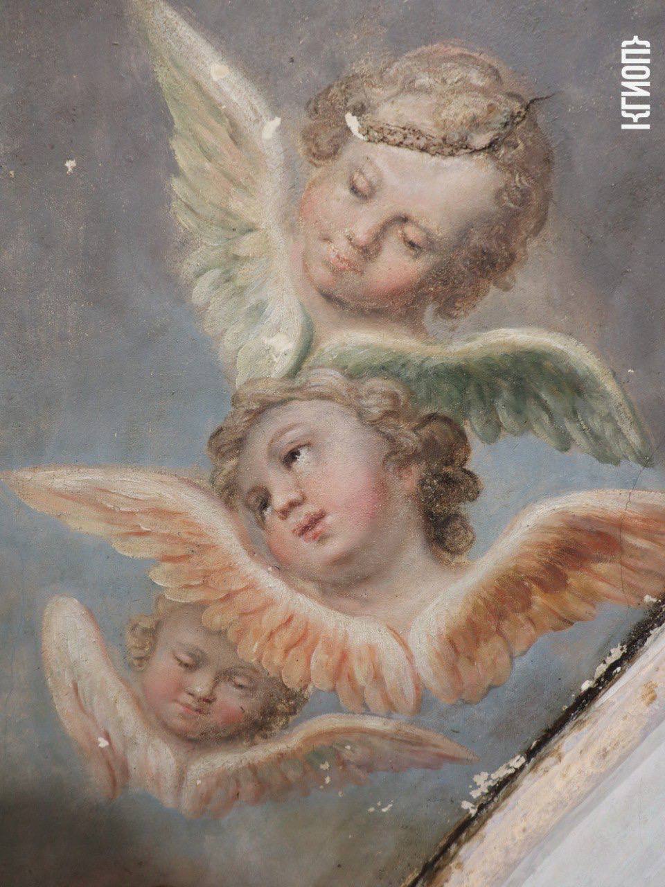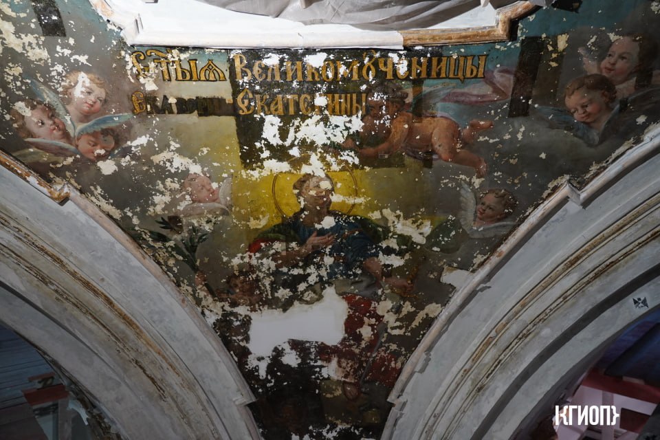 Также в ходе расчисток реставраторы раскрыли фрагменты росписи масляными красками по штукатурке с изображением Святых Великомучениц Екатерины, Дарьи, Анастасии и Аглаи.