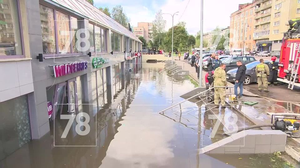 Торговый центр на проспекте Ленина из-за ливня превратился в аквапарк — здание спроектировано так, что сюда прямо-таки напрашивался бассейн. Коим и стали помещения на первом этаже. Службы прибыли на место и откачивали воду.Автовладельцы из Выборга...
