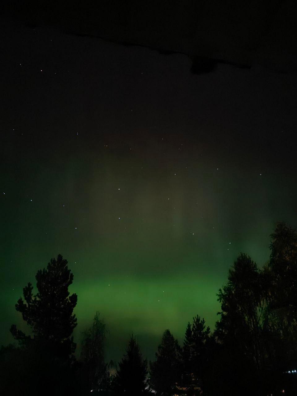 Зеленые переливы на фоне звездного неба удалось запечатлеть в ночь на четверг, 2 октября. Снимками охотники за огнями Авроры поделились в telegram-канале «GoAurora».