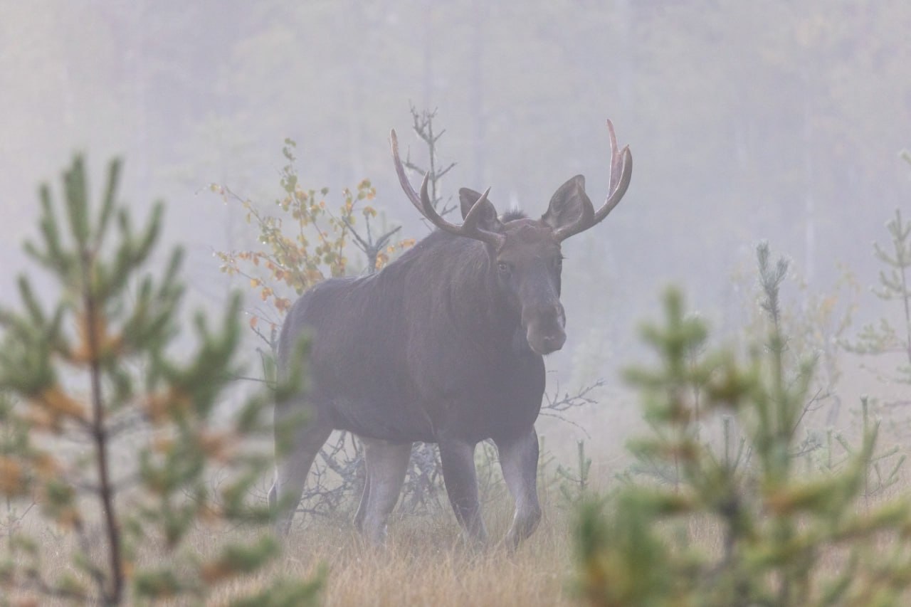 В самом разгаре у сохатых - гон, брачные игры. Период начался еще в конце августа, но теплый сентябрь не позволил самцам разгуляться вволю: из-за своего теплого меха в такую погоду они слишком перегреваются, бегая за невестами или сражаясь с соперниками. Прохлада - самое комфортное для лесных великанов время для амурных дел. С вечера и до самого утра самцы активно рыщут по лесам в поисках самок или соперников.