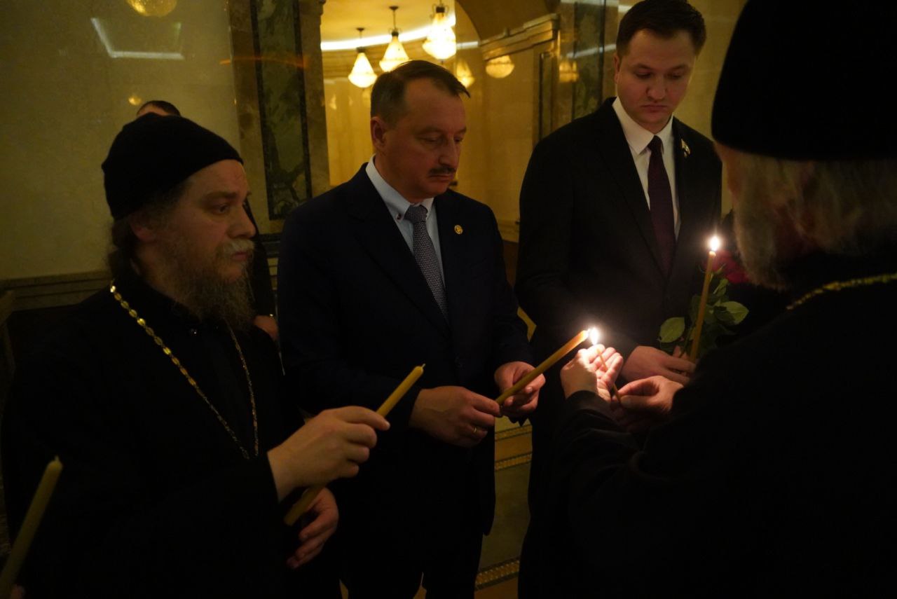 Сегодня в Минске председатель Леноблизбиркома Михаил Лебединский принял участие в церемонии закладки в крипту Храма-памятника Всех Святых и в память о жертвах, спасению Отечества нашего послуживших капсулы с землей...