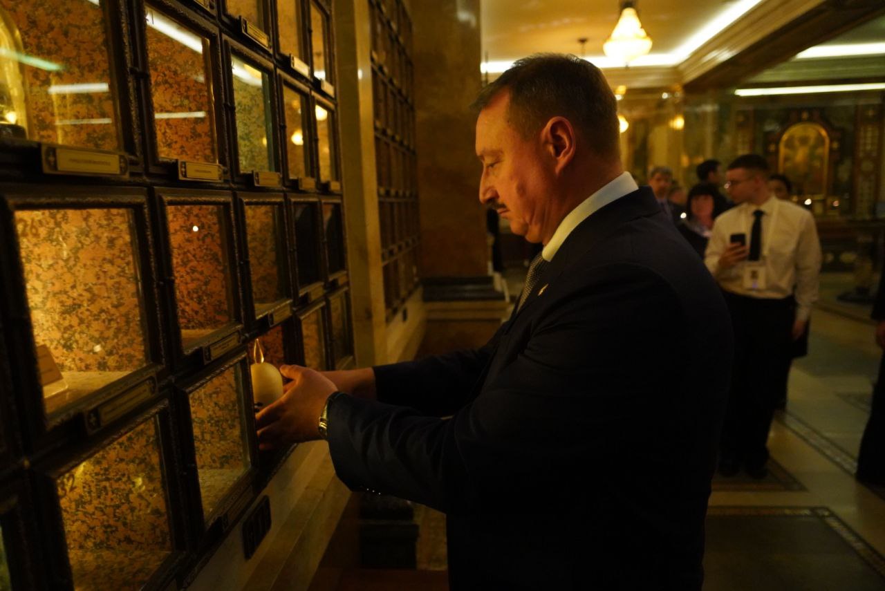 Сегодня в Минске председатель Леноблизбиркома Михаил Лебединский принял участие в церемонии закладки в крипту Храма-памятника Всех Святых и в память о жертвах, спасению Отечества нашего послуживших капсулы с землей, привезенной из Ленинградской области. Церемонию провел руководитель национального мемориального комплекса «Храм-памятник в честь Всех Святых и в память о жертвах, спасению Отечества нашего послуживших», протоирей Федор Повный.