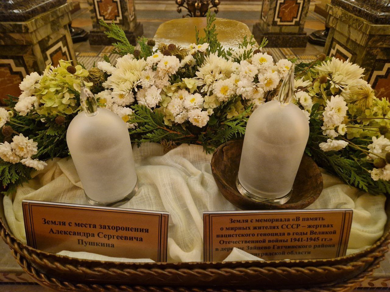 Крипта (нижняя алтарная часть храма) - уникальный объект, аналогов которого нет во всем мире. Здесь собрана земля с полей всех великих исторических сражений в защиту Отечества, а также с мест захоронений мирных жителей, ставших жертвами военных кампаний и репрессий. В стенах крипты размещены 504 ниши, часть из которых заполнена. Так, в нишах Крипты находятся, в том числе, капсулы с землей с мест сражений на Курской дуге, с Пискарёвского кладбища Санкт-Петербурга. Теперь здесь также будет храниться земля из Ленинградской области.