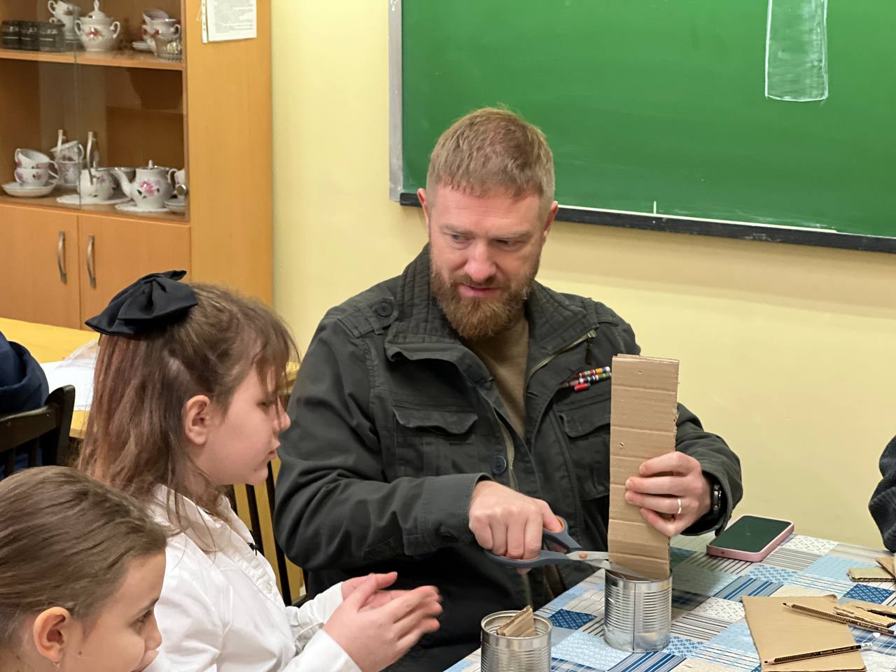 Умение рассказать о военных буднях и быте с юмором – бесценно: дети, открыв рот, слушали, как Денис бегал под дронами в разгрузке на 30 кг с двумя минами за спиной (это еще +20). Говорил, что самое сложное было потом вставать с таким дополнительным весом!)