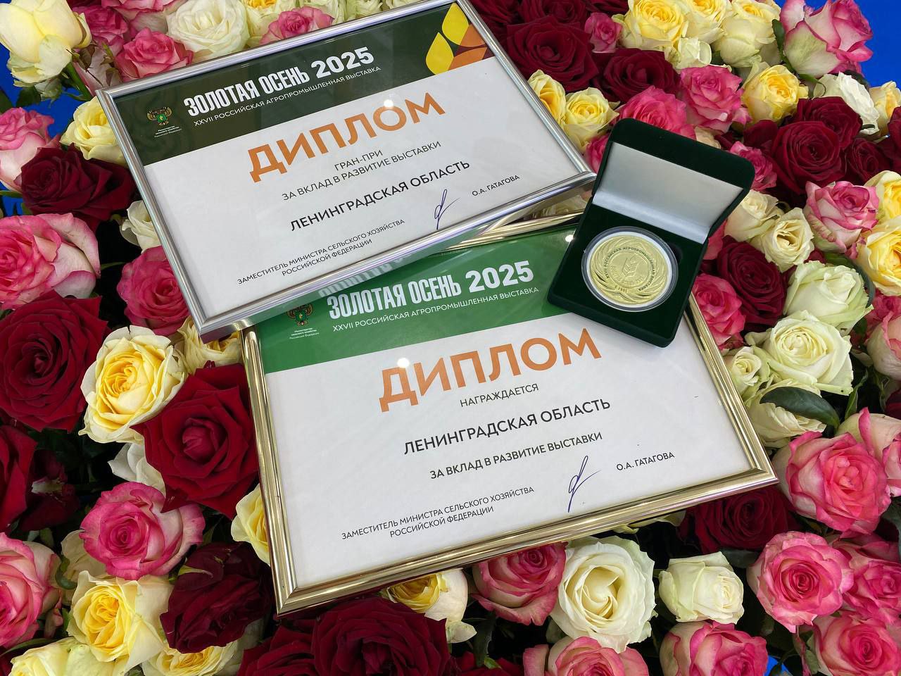 Гран-при и золотую медаль за вклад в развитие выставки «Золотая осень» 2025 года получила Ленинградская область.