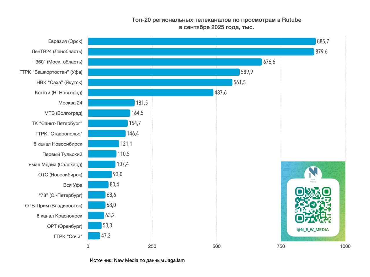 Источник: New Media по данным JagaJam среди 97 телеканалов