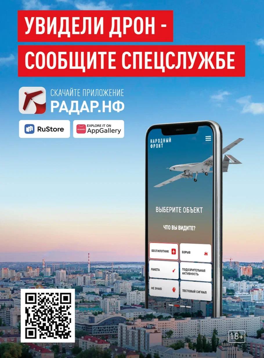 Увидел беспилотник — сообщи! Приложение «РАДАР.НФ» позволяет каждому гражданину оперативно сообщать о замеченных беспилотных летательных аппаратах.
