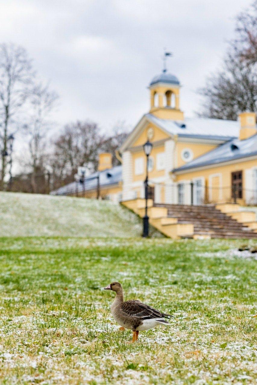 В музее-заповеднике «Парк Монрепо» (Выборг, Ленинградская область) заметили молодого белолобого гуся. Птица отстала от своей стаи и решила отдохнуть в живописном месте, - рассказал натуралист Павел Глазков.