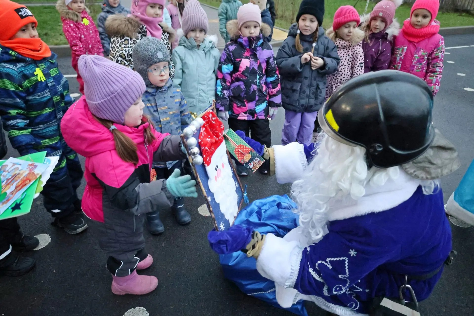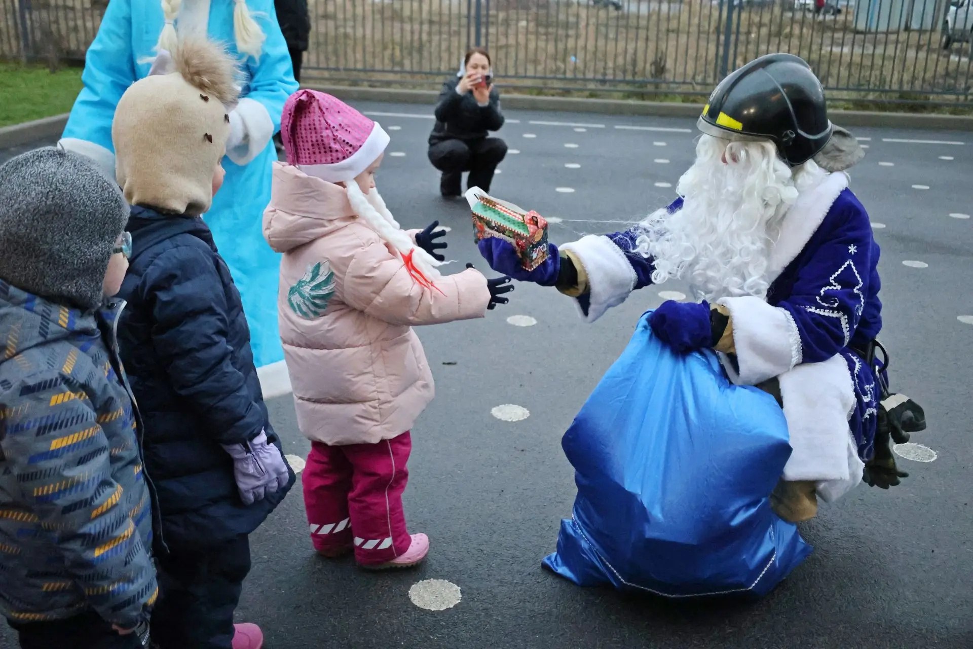 Юных жителей Янино поздравил Пожарный Дед Мороз