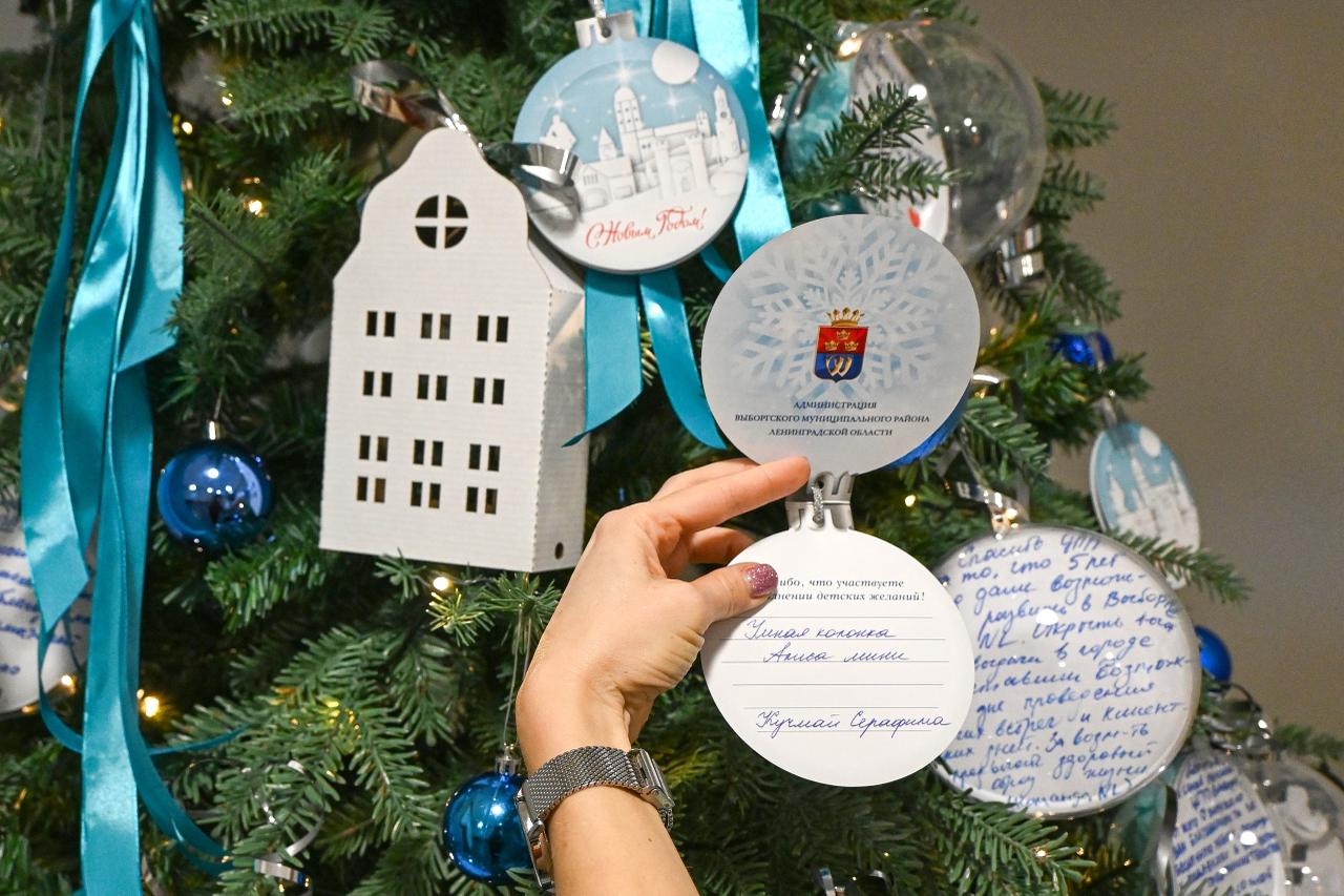 Выборгский район Ленинградской области присоединился к благотворительной акции «Елка желаний». Депутаты, представители администрации, предприниматели и неравнодушные жители исполнят мечты одаренных детей, достигших высоких результатов в учебе и творчестве.