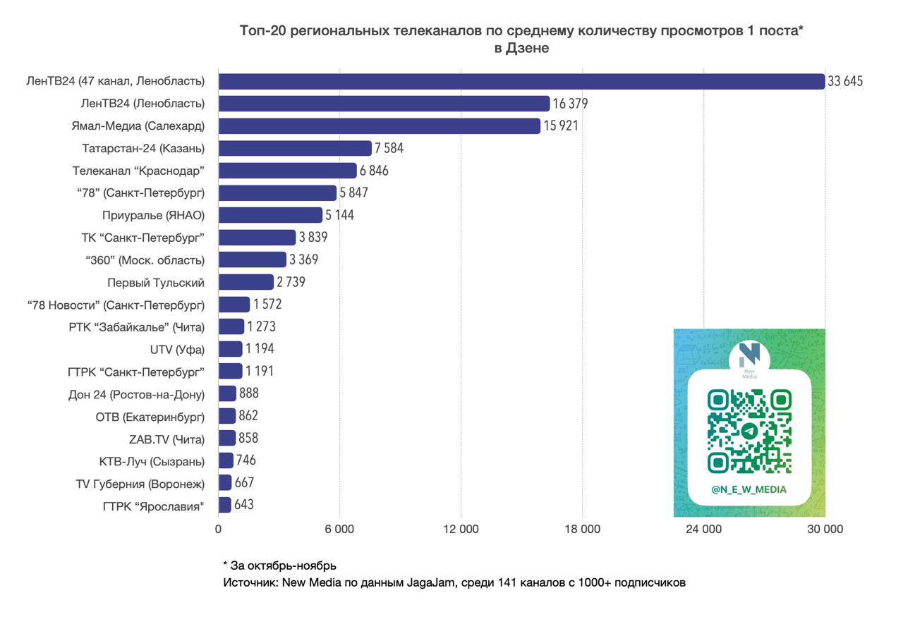 Топ-20 региональных телеканалов в Дзене в ноябре 2025 года