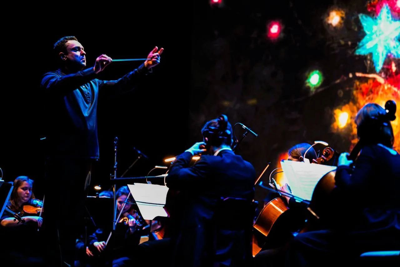 На сцене — Симфонический оркестр Ленинградской государственной областной филармонии под управлением маэстро Михаила Голикова. В программе — рождественские мелодии, произведения классиков, музыка из новогодних фильмов и фрагменты балета «Щелкунчик». В течение вечера к оркестру присоединятся Сергей Бобунец, Аскар Абдразаков и Ольга Пудова.