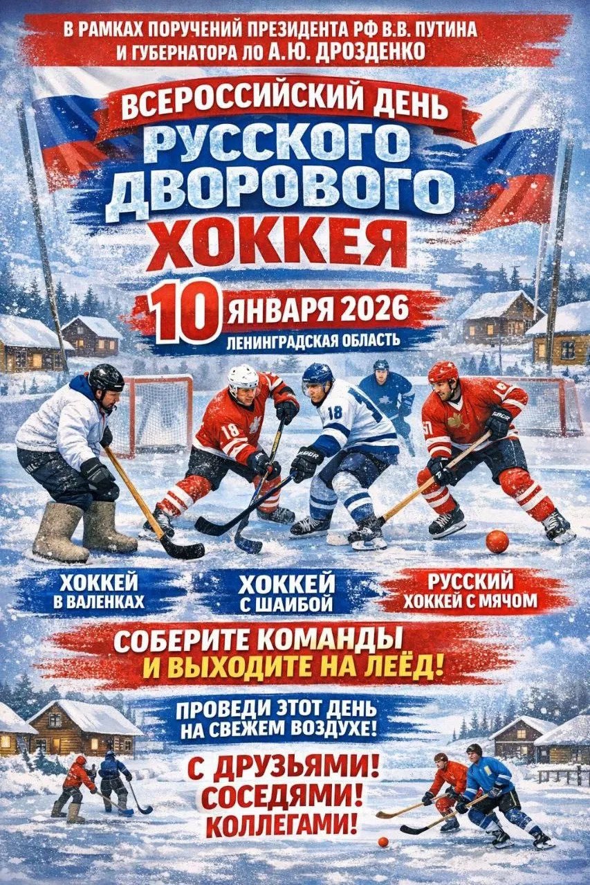 Завтра Ленинградская область впервые примет Всероссийский день русского дворового хоккея. Регион выступил организатором мероприятия по поручению президента РФ и региональных властей.