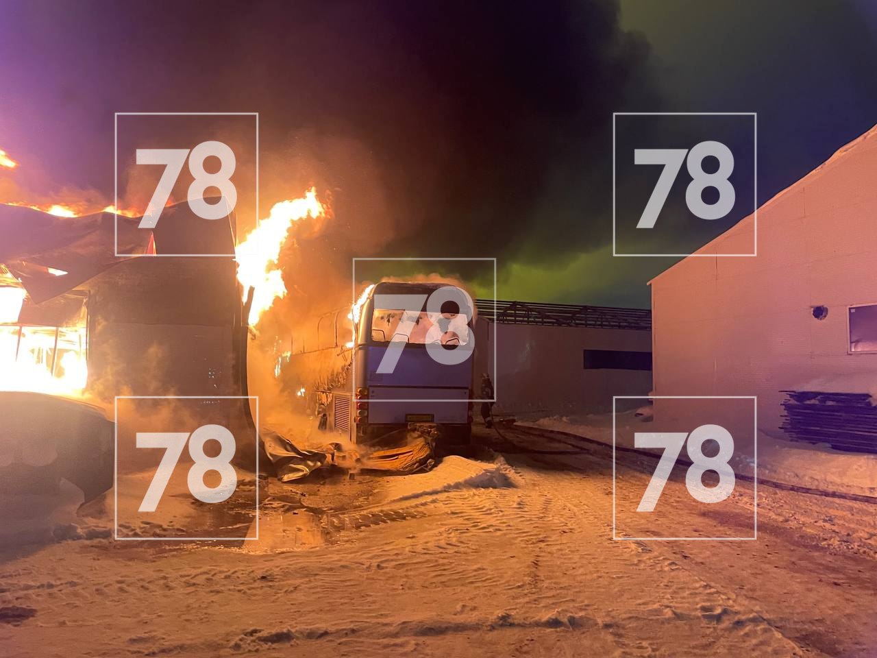 В Ленобласти горят построенный из металлоконструкций ангар и автобус