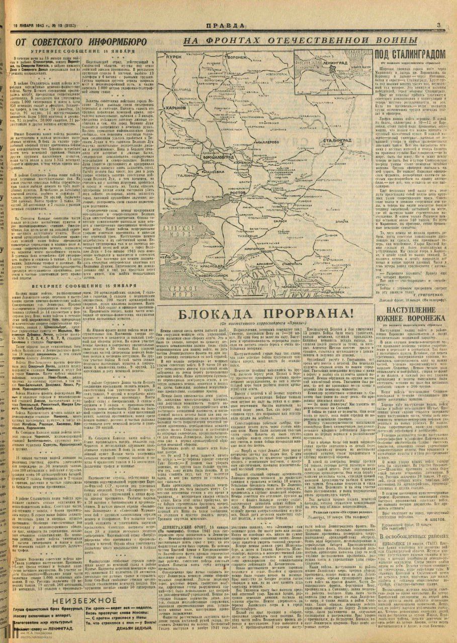 18 января 1943 года в ходе операции «Искра» Красная Армия прорвала блокаду Ленинграда
