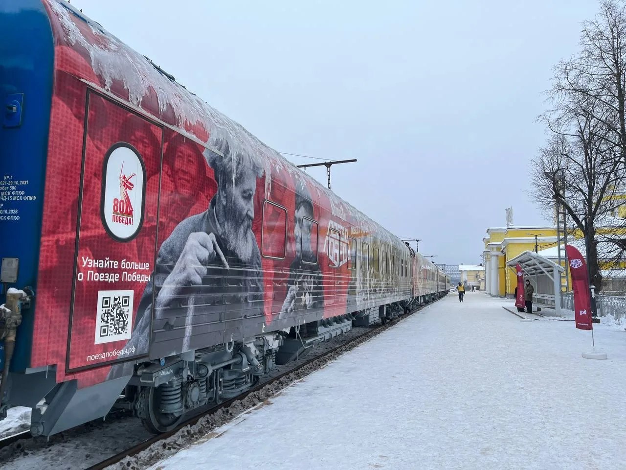 «Поезд Победы» заканчивает свой маршрут по Ленобласти. Последней остановкой стала Луга. Там он пробудет до 19:00 21 января.