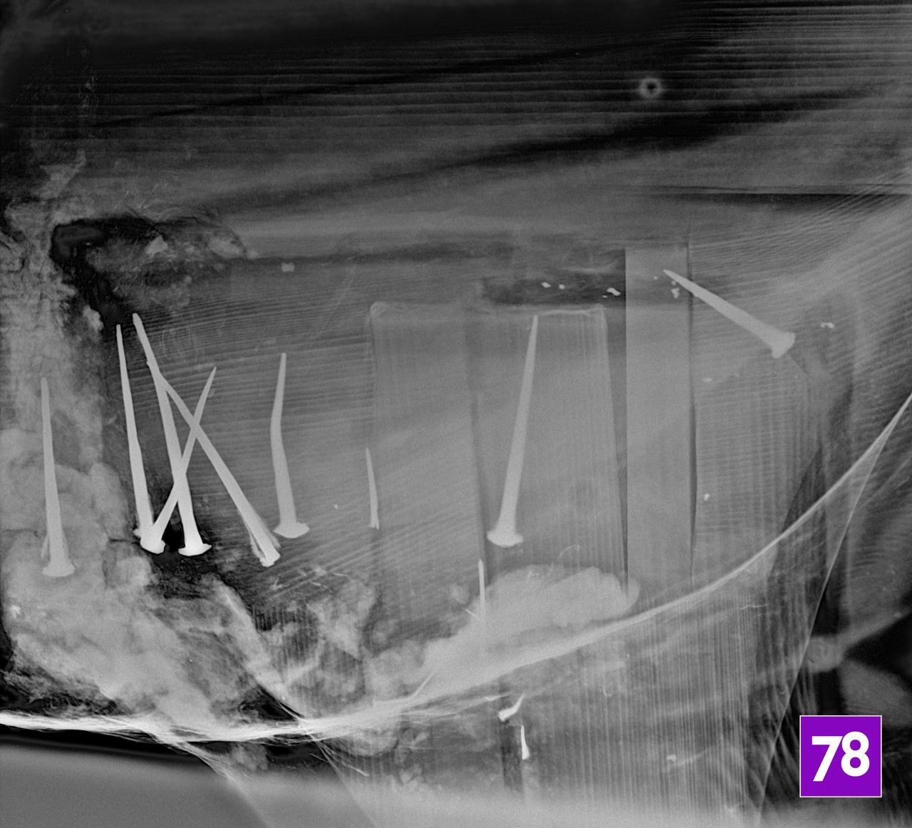 Внутри чучел собак Лизетты и Тирана обнаружили десятки гвоздей разной формы: от старых кованых до более современных. По ним специалисты теперь могут отследить историю реставраций.