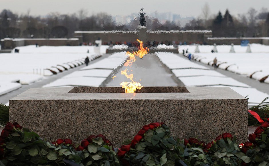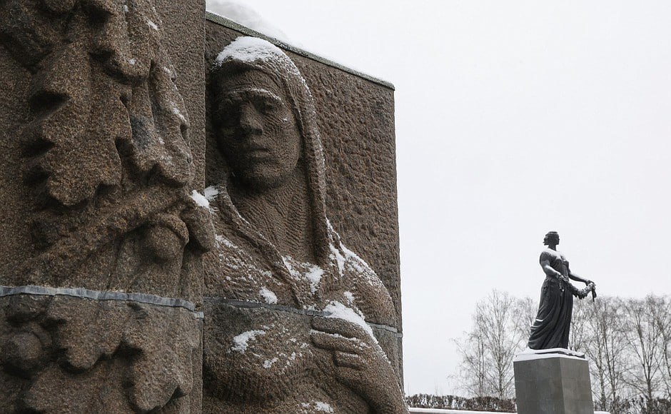 В.В.Путин приехал также на Пискарёвское мемориальное кладбище в Санкт-Петербурге. Глава государства возложил венок к монументу «Мать-Родина», почтив память погибших ленинградцев и защитников города.