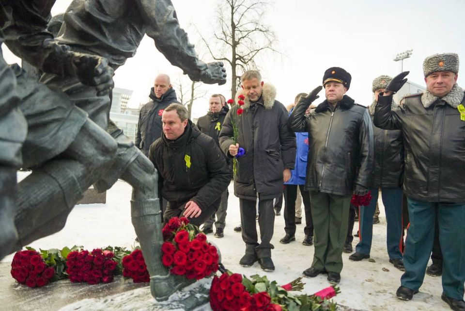 Спикер парламента Александр Бельский и Губернатор города Александр Беглов возложили цветы к Памятнику футболистам блокадного Ленинграда