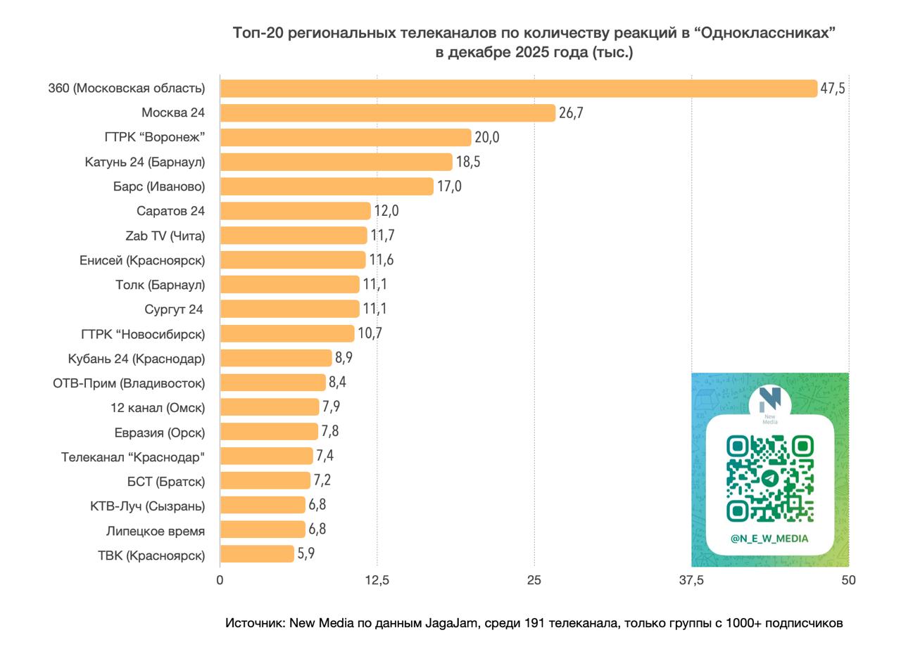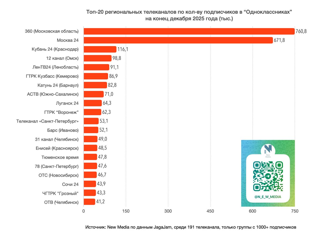Топ-20 региональных телеканалов в “Одноклассниках” в декабре 2025 года