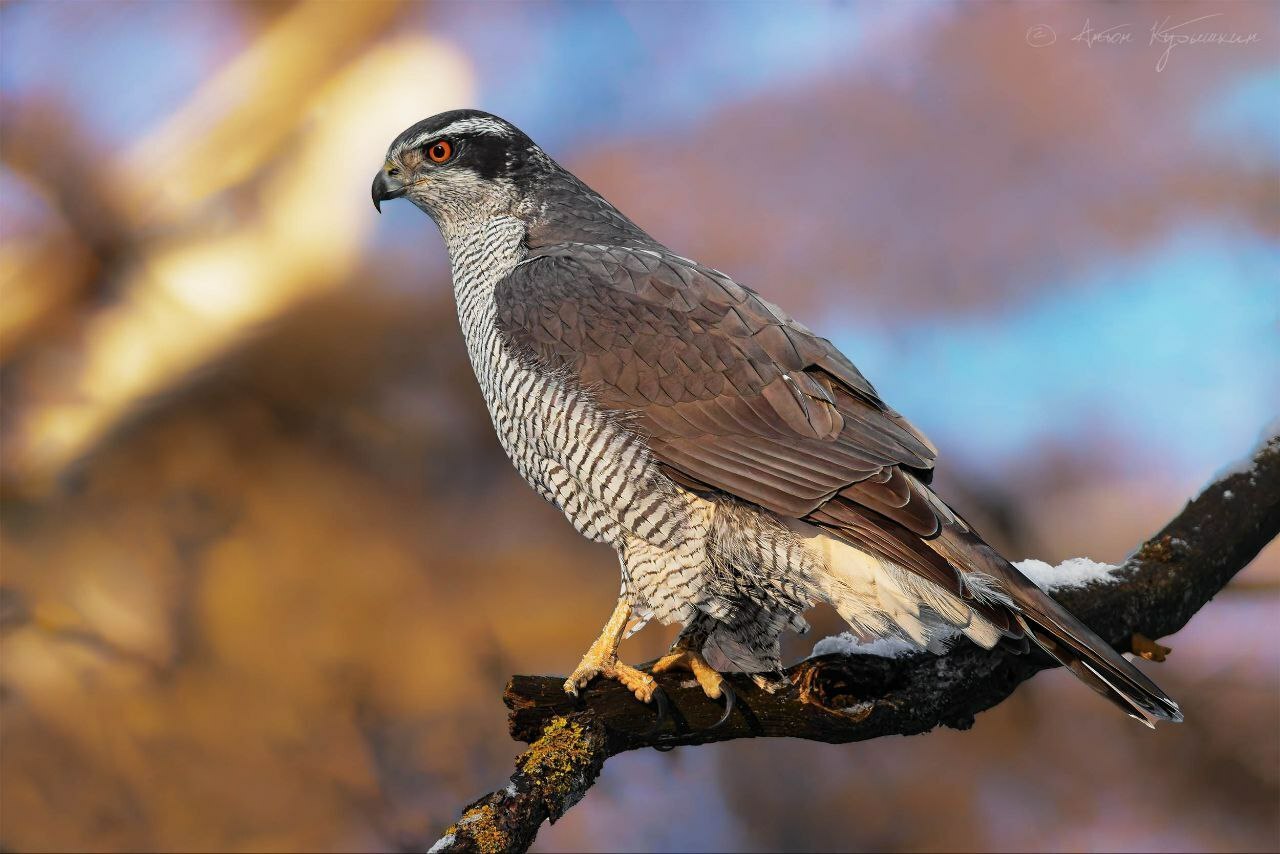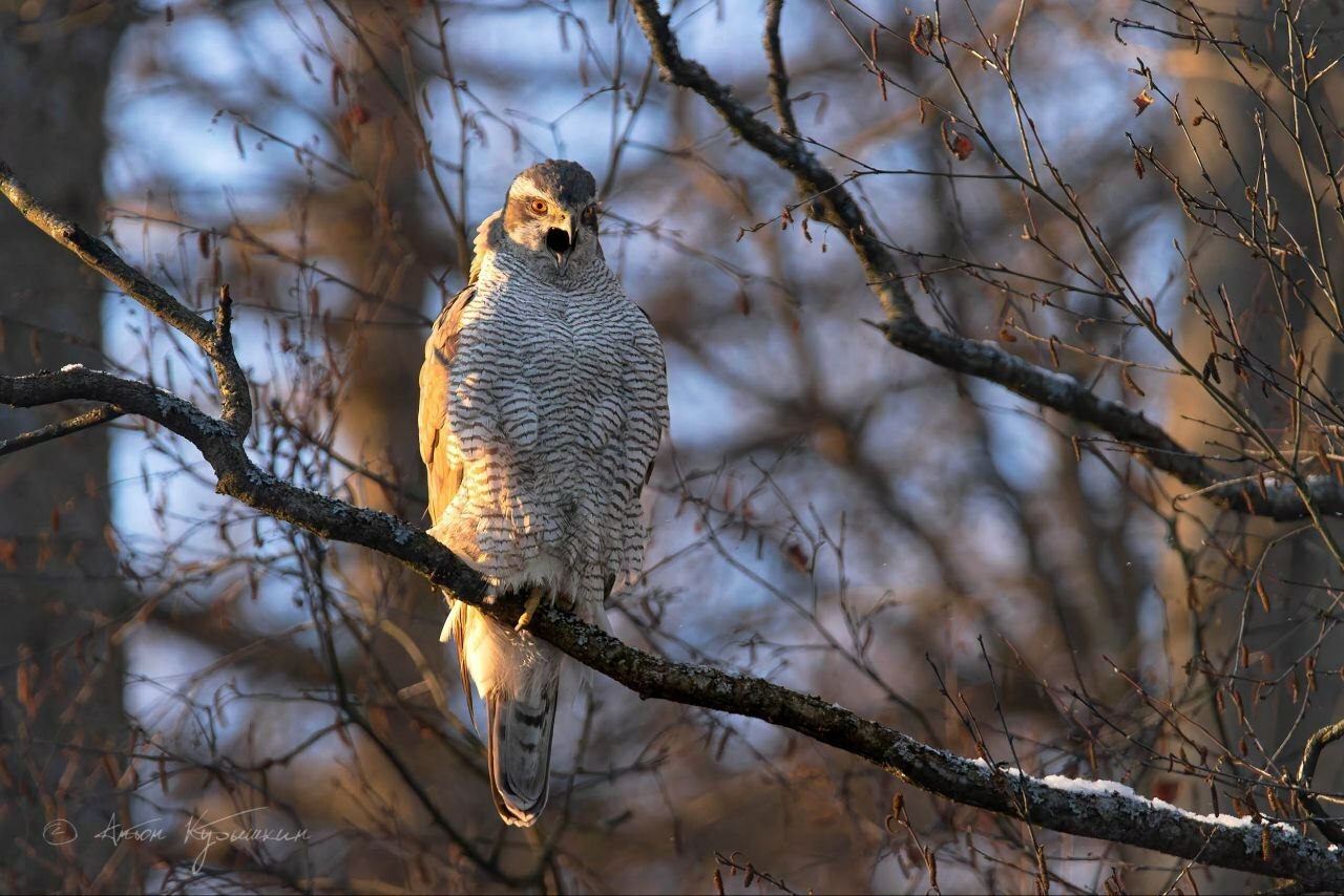 В Удельном парке Петербурга ястреб-тетеревятник покрасовался перед фотографом