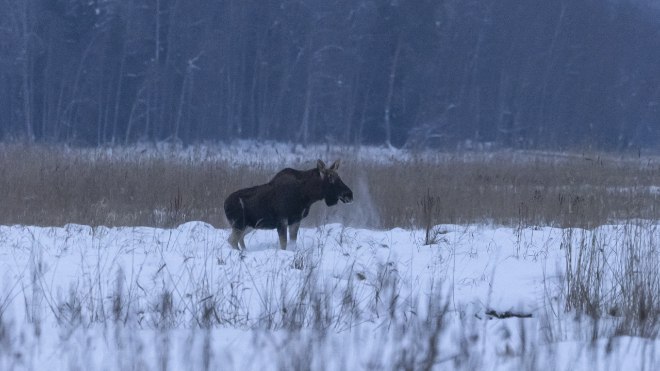 В морозы у хищников возрастает аппетит, что сказывается на поведении их потенциальной добычи. Растерявшие свой боевой настрой лоси сбросили рога и сбились в компании для безопасности. Они постоянно друг с другом перекликаются множеством различных звуков. Самцов можно узнать по крепкому телосложению и большой бороде. У самок она заметно меньше.