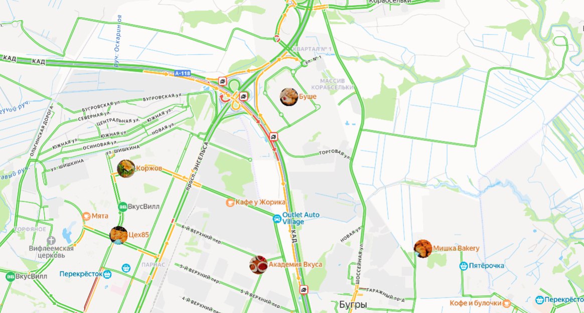По данным на момент подготовки публикации движение на данном участке КАД затруднено на 3,78 километров.