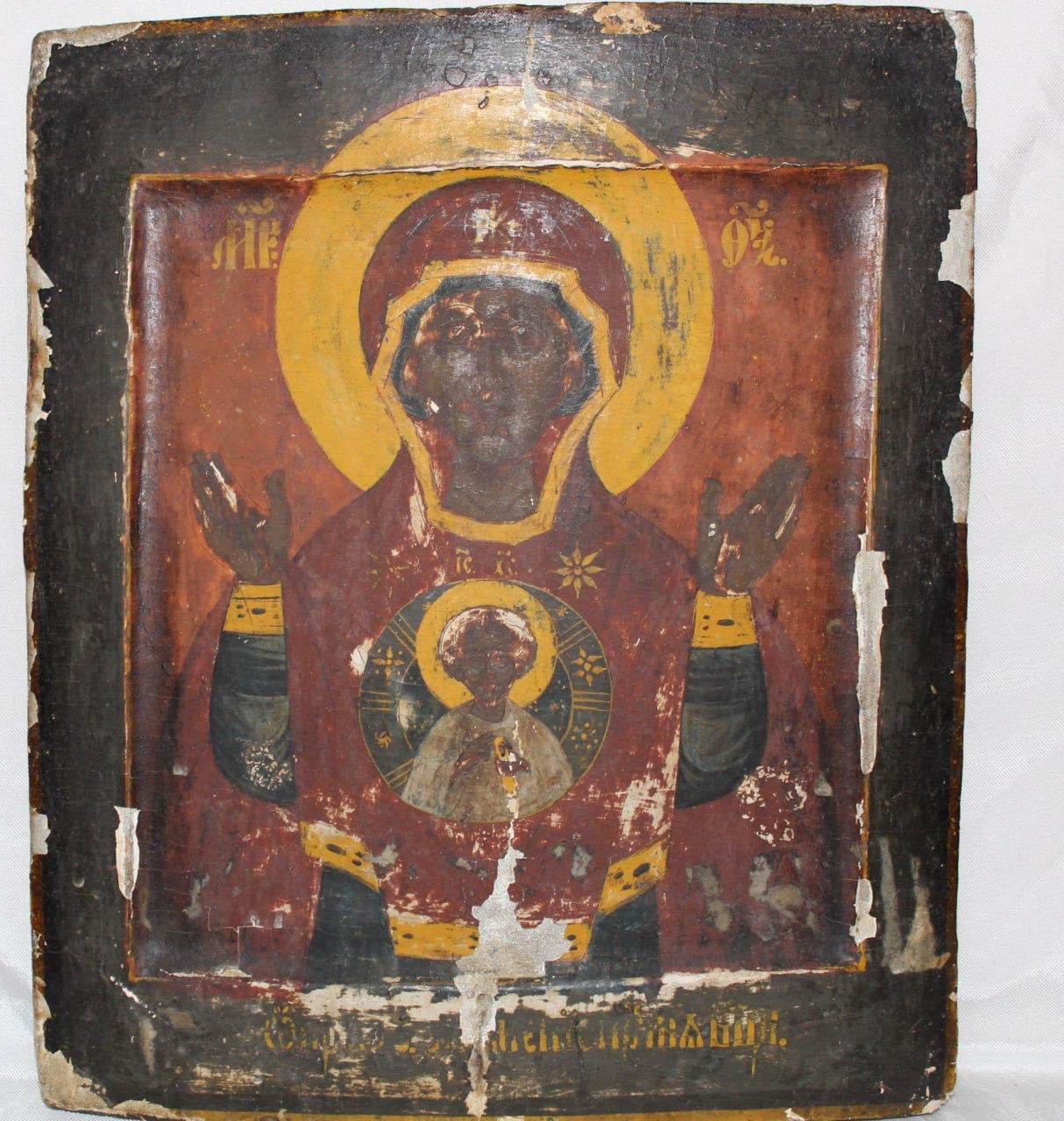 Специалисты также датировали икону «Знамение» XVII веком, «состарив» ее на 100 лет. На образе, считавшемся изображением Сергия Радонежского, проявилась надпись, идентифицирующая святого как преподобного Антония Дымского.